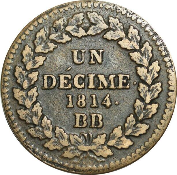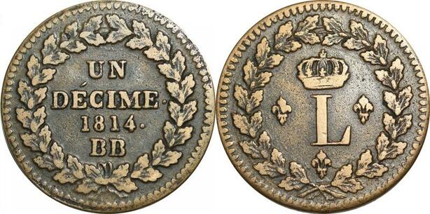 O9484 Un Décime Louis XVIII au L couronné 1814 BB Strasbourg .. TTB - F Offre