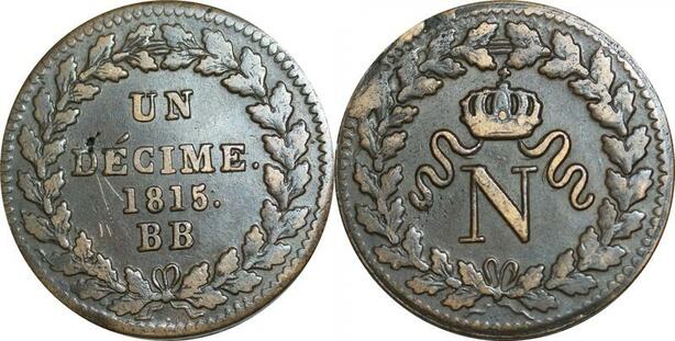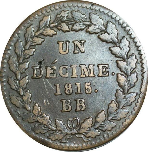 O9491 France Un Décime Louis XVIII N couronné 1815 BB Strasbourg .. ->Make offer