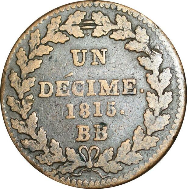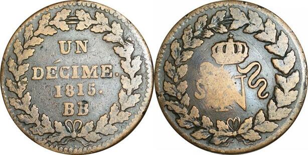O9495 France Un Décime Louis XVIII N couronné 1815 BB Strasbourg .. ->Make offer