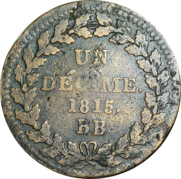 O9496 France Un Décime Louis XVIII N couronné 1815 BB Strasbourg .. ->Make offer