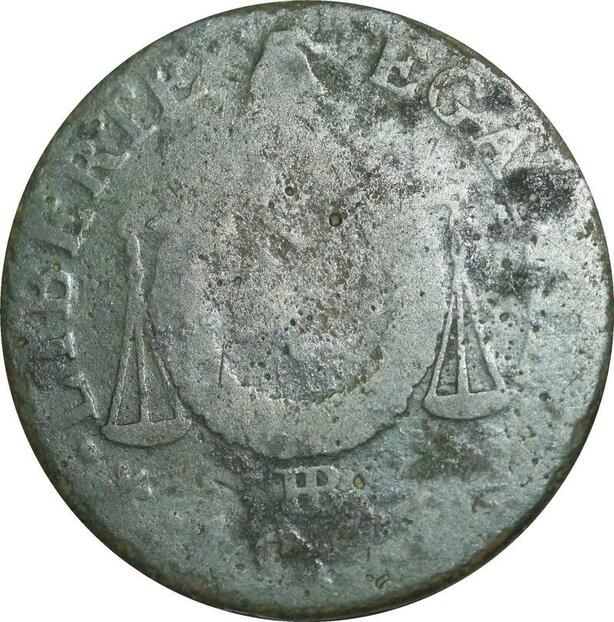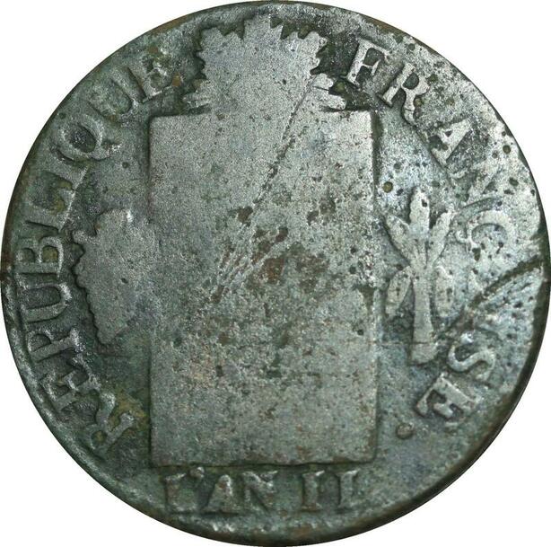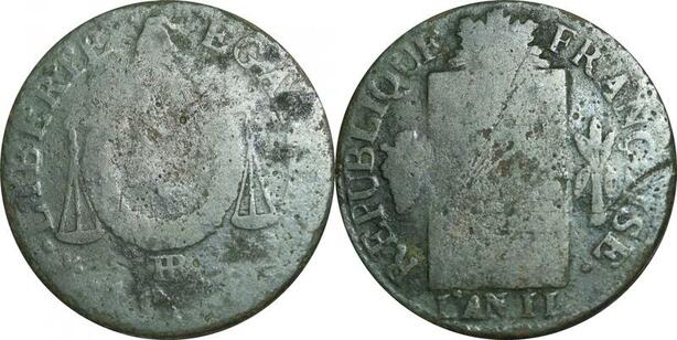 O9510 Rare France Convention Un Sol balances Louis XVI Françoise An II 1793 BB Strasbourg