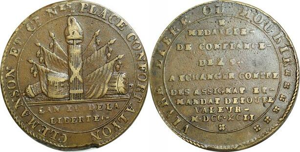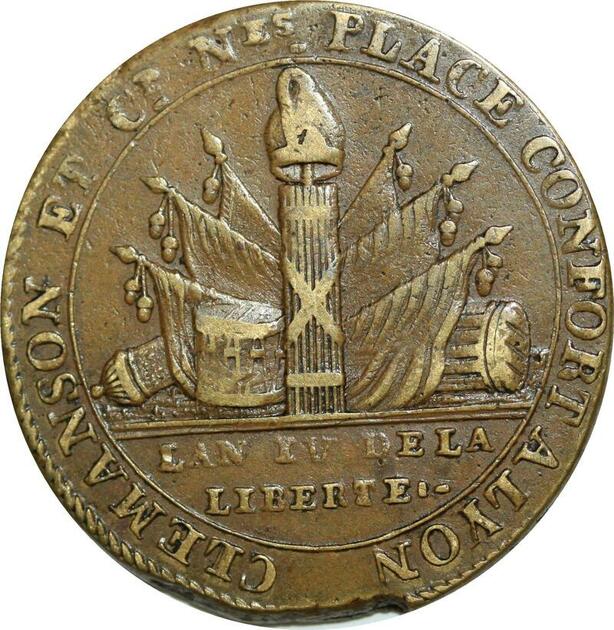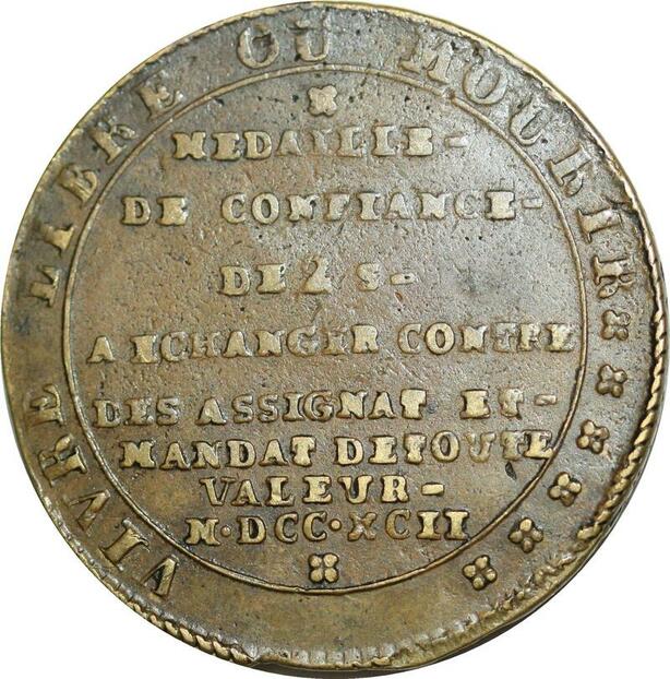 O9513 Très Rare ! France Constitution Lyon 2 Sols de Clémanson An IV Lyon TTB++