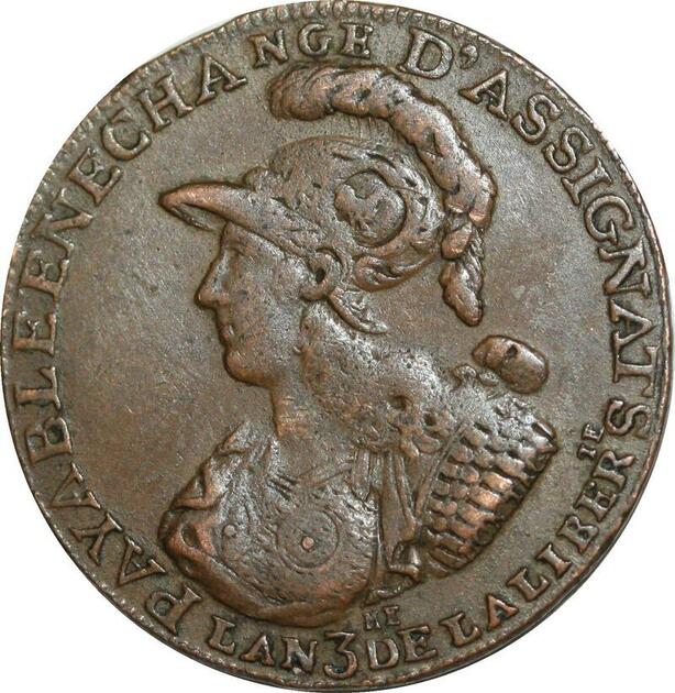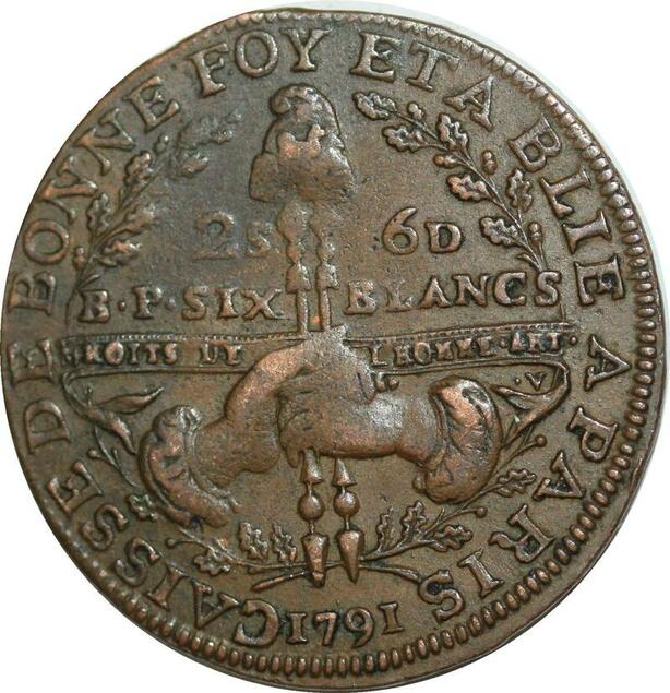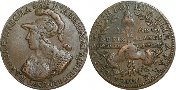 O9517 Rare France Constitution 2 Sols 6 Deniers Caisse Bonne foy 1791