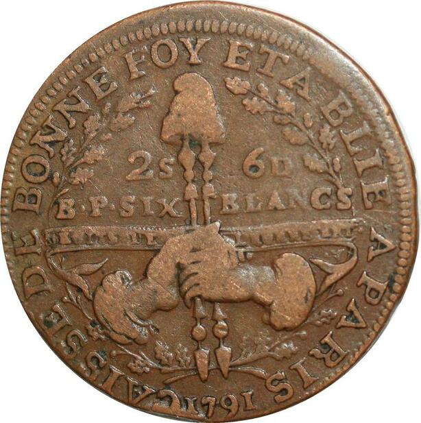 O9518 Rare France Constitution 2 Sols 6 Deniers Caisse Bonne foy 1791