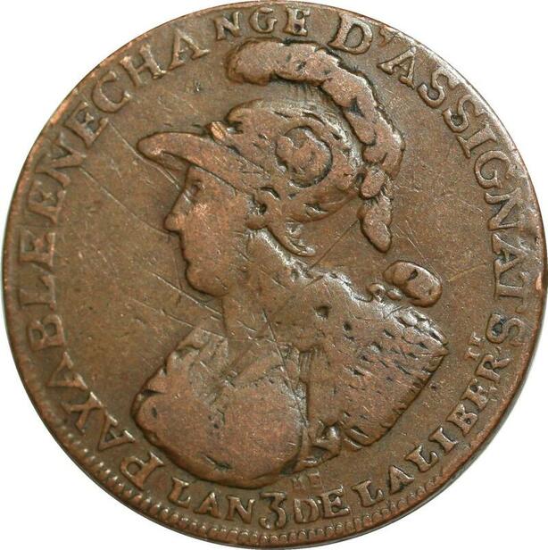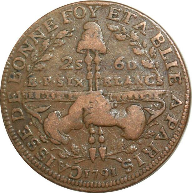 O9520 Rare France Constitution 2 Sols 6 Deniers Caisse Bonne foy 1791