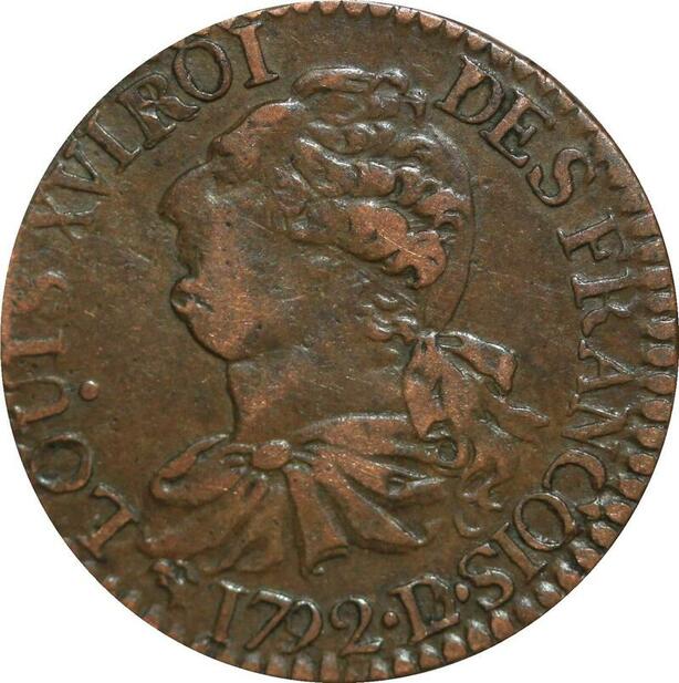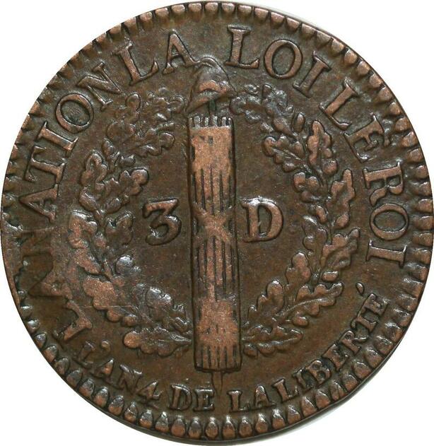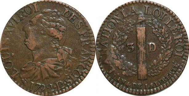 O9528 France Constitution 3 Deniers Louis XVI François An 4 1792 D Lyon 2nd sem