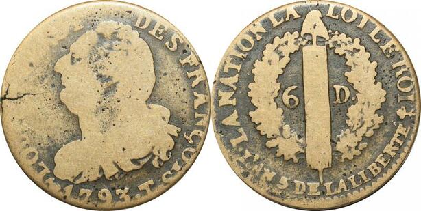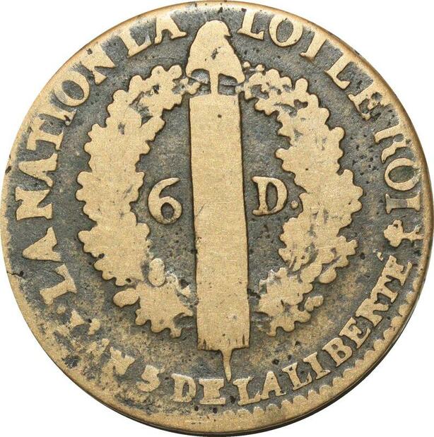 O9537 Rare France Constitution 6 Deniers Louis XVI Francais An 3 1793 T Nantes