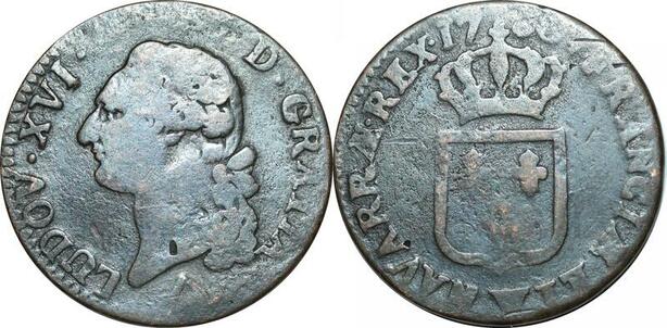 O9555 Rare France R4 Sol Louis XVI 1788 W Lille ->Make offer