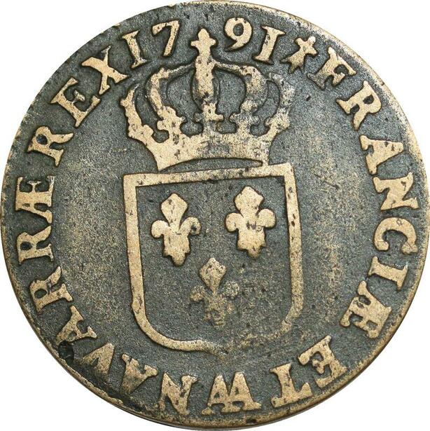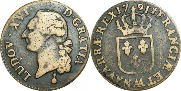 O9556 France Sol Louis XVI 1791 AA Metz 2nd sem ->Make offer
