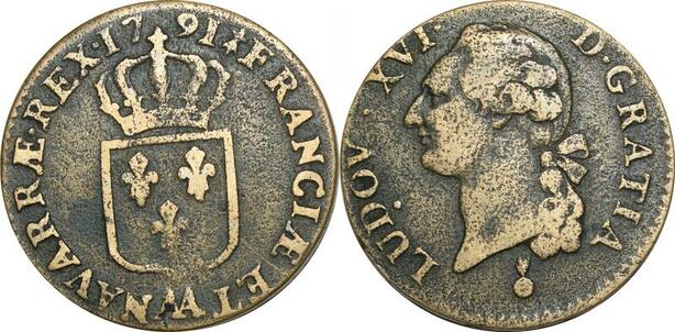 O9559 France Sol Louis XVI 1791 AA Metz 2nd sem ->Make offer