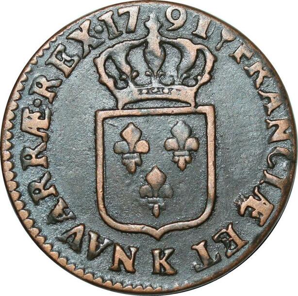 O9579 France Sol Louis XVI 1791 K Bordeaux 1er sem TTB ->Make offer