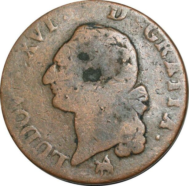O9583 France Sol Louis XVI 1790 B Rouen ->Make offer