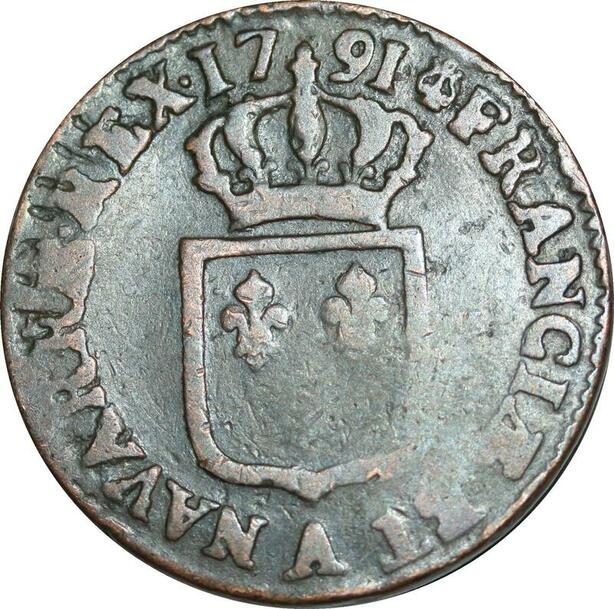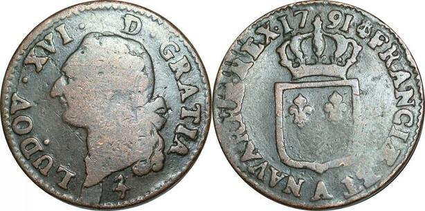 O9588 France Sol Louis XVI 1791 A Paris 2nd Sem Héron ->Make offer