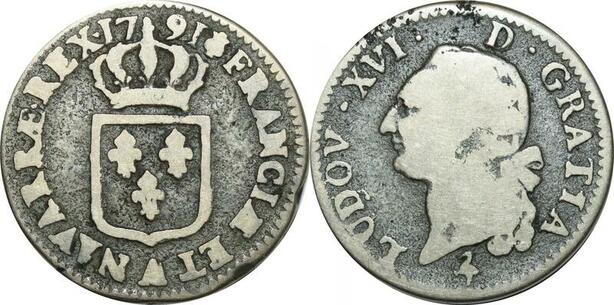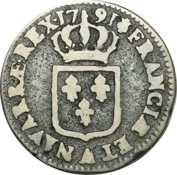 O9595 Rare France Sol Louis XVI 1791 A/A Paris Héron métal cloche ->Make offer