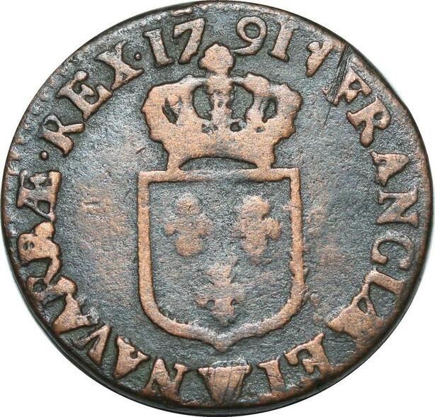 O9599 Rare France 1/2 Sol Louis XVI 1791 W Lille 2ème semestre / T Nantes ->Make offer