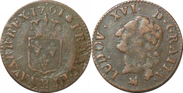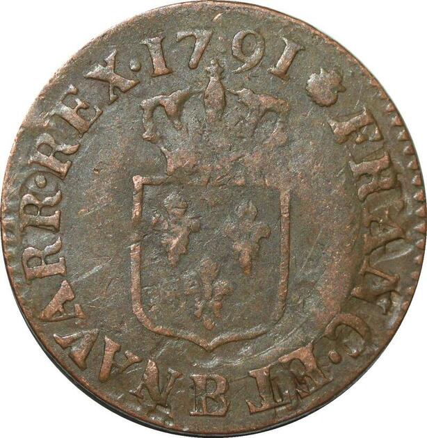 O9601 France Liard Louis XVI 1791 B Rouen 2ème semestre ->Make offer