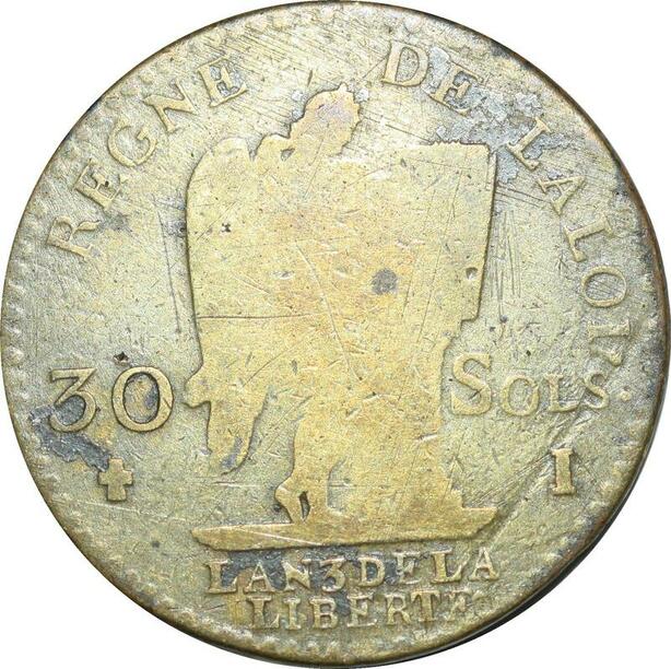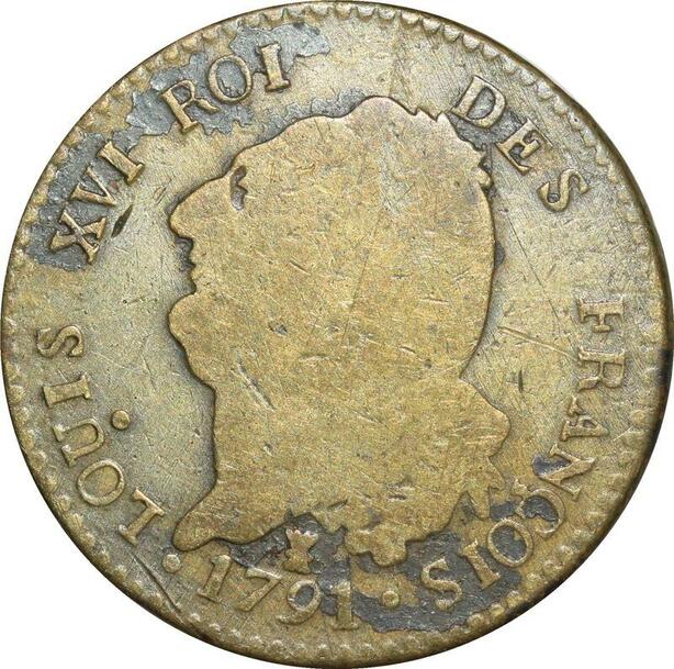 O9605 Rare France Faux Epoque 30 Sols Louis XVI François 1791 2èm sem I Limoges Silvered