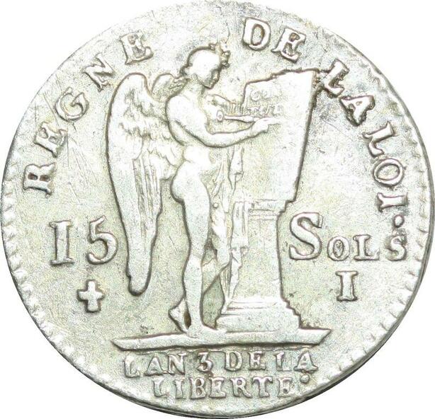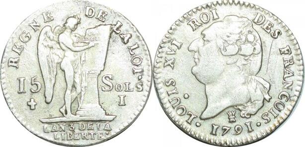 O9612 France Constitution 15 Sols Louis XVI François An 3 2d sem 1791 I Limoges Argent