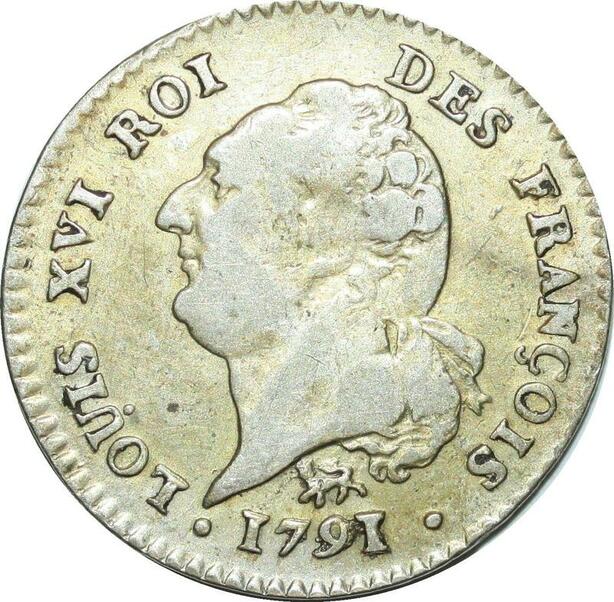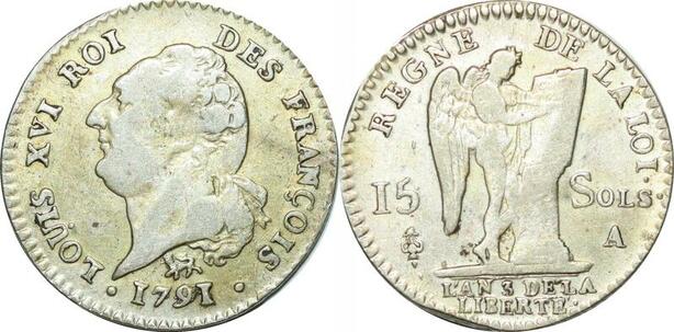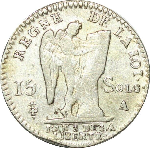 O9616 Rare France Constitution 15 Sols Louis XVI An 3 2d sem Leopard 1791 Paris