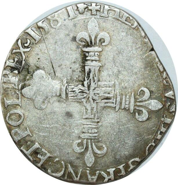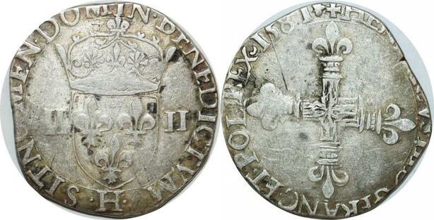 O9621 Rare France 1/4 Ecu Henri III 1581 H La Rochelle Argent ->Make offer