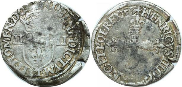 O9623 Rare France 1/4 Ecu Henri III 1579 T Nantes Frappe Casquette Argent ->M offre