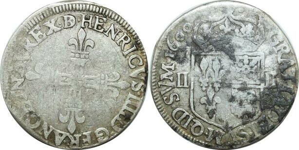 O9624 Rare France 1/4 Ecu Henri IV 1600 Bearn Moorlaas Argent ->Make offer