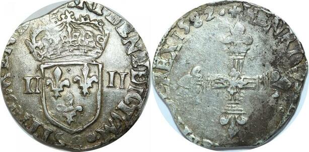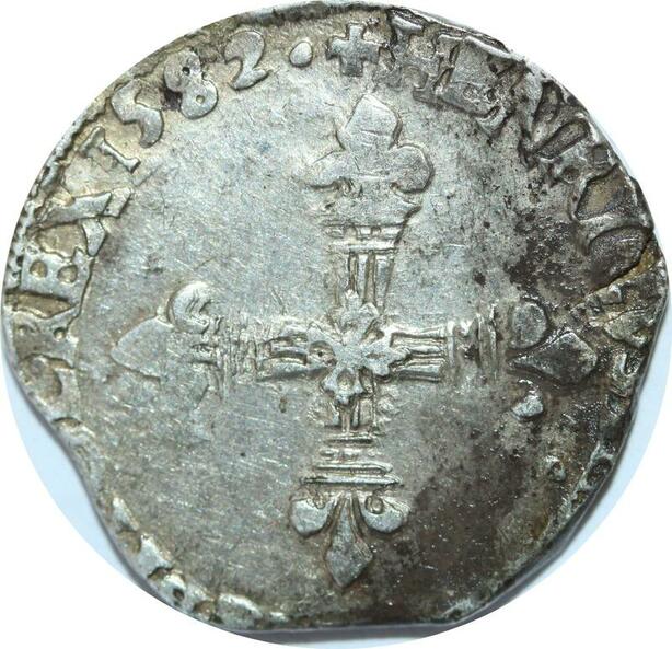 O9627 Rare France 1/4 Ecu Henri III 1582 9 Rennes Argent ->Make offer