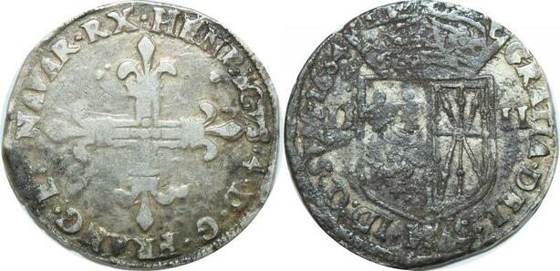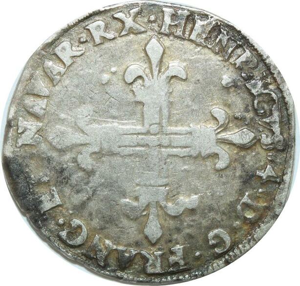 O9633 Rare France 1/4 Ecu Henri IV 1604 Navarre Argent ->Make offer