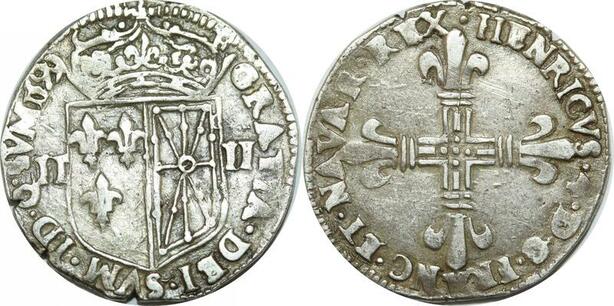 O9634 Rare France 1/4 Ecu Henri IV 1599 Navarre Argent ->Make offer