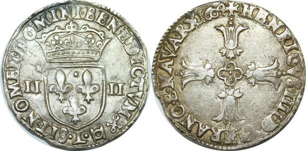 O9635 Rare France Qualité 1/4 Ecu Henri IV 1604 L Bayonne Argent TTB+ AU53