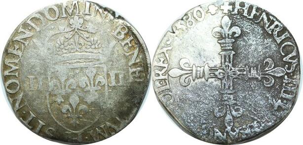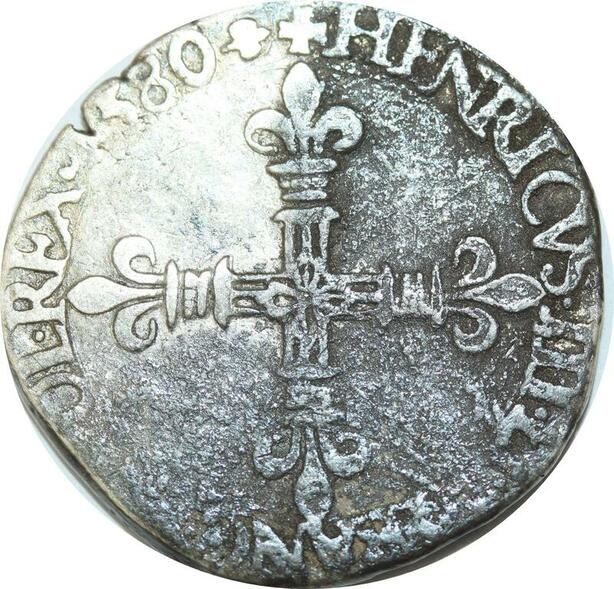 O9643 Rare France 1/4 Ecu Henri III 1580 H La Rochelle Argent ->Make offer