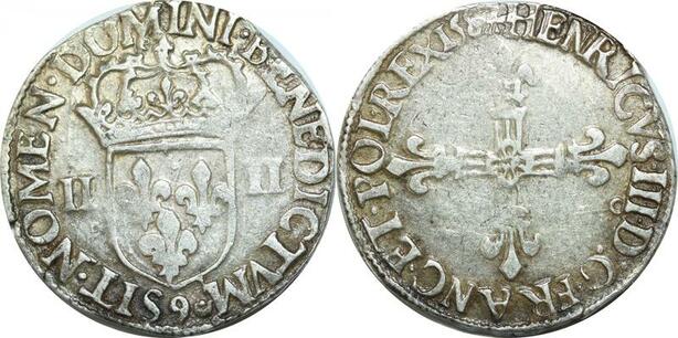 O9645 Rare France 1/4 Ecu Henri III 1587 9 Rennes Argent ->Make offer