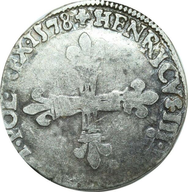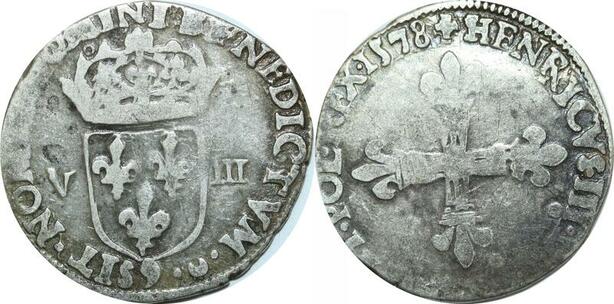 O9647 Rare France 1/8 Ecu Henri III 1579 9 Rennes Argent ->Make offer
