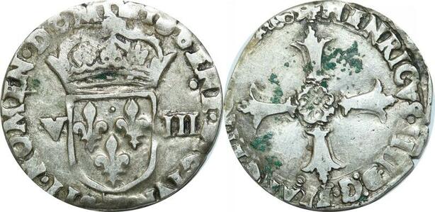 O9649 Rare France 1/8 Ecu Henri IV 1600 T Nantes Argent ->Make offer