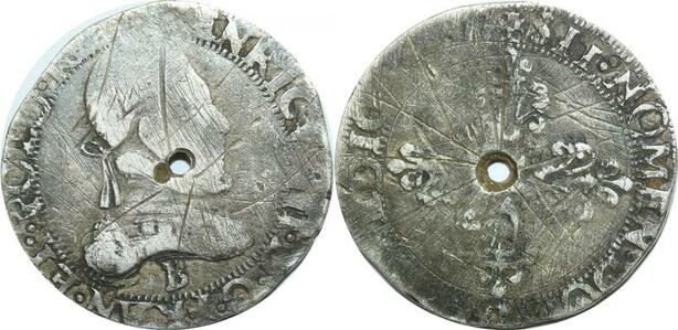 O9661 Rare France Franc au Col Fraisé Henri III 1577 B Rouen Argent ->Make offer