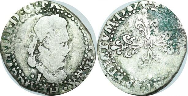 O9662 Très Rare France 1/4 Franc Henri III 1587 I Limoges Argent ->Make offer