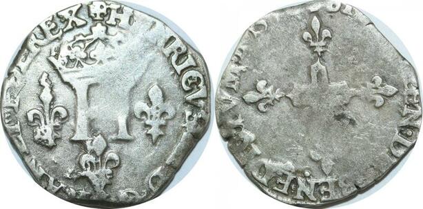 O9668 Rare France Double Sol Parisis Henri III 1584 S TroYes Argent ->Make offer