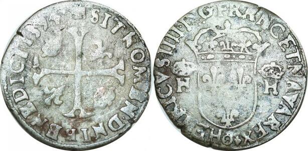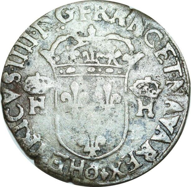 O9676 Rare France Douzain Henri IV Deux H Couronnés 1594 O Pointé Clermont Ferrand