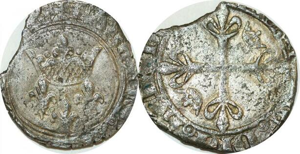 O9702 France Duc de Bourgogne Charles VI 1422 florette avec argenture !! Qualite