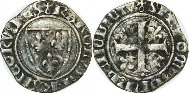 O9707 Rare Blanc Guénar Charles VI 5ème émission Paris 1422 Argent ->Make offer