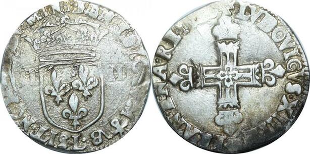 O9716 Rare France 1/4 Ecu Louis XIII CRoix fleurdelisée L Bayonne Argent ->M offre