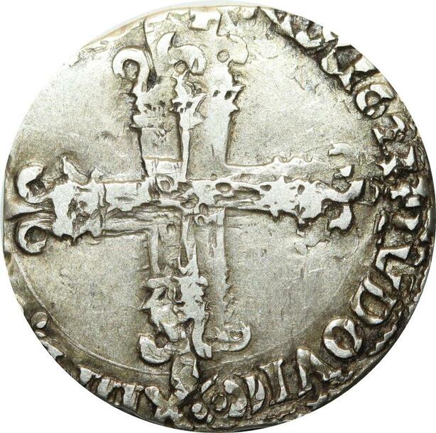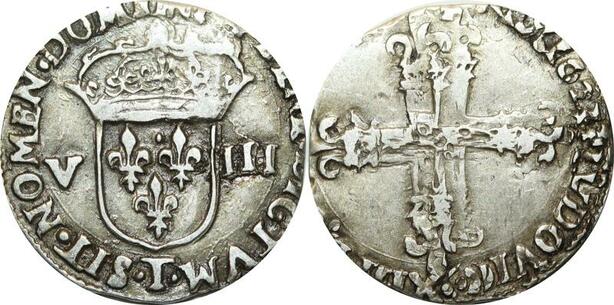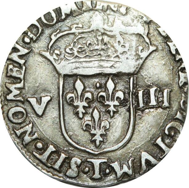 O9721 Rare R3 France Double Frappe 1/8 Ecu Louis XIII 1623 T Nantes Argent