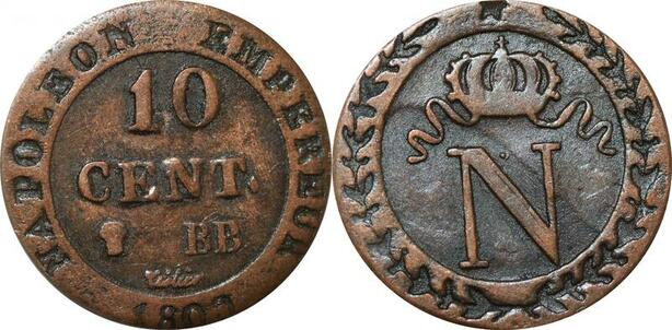 O9786 France Faux d'époque 10 Centimes Napoléon I 1809 BB Strasbourg ->Make offer