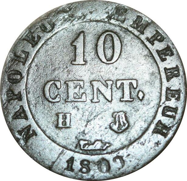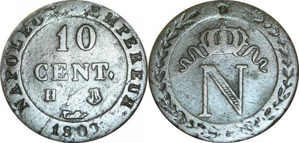 O9804 Rare France 10 Centimes Napoléon I 1809 H La Rochelle Inversé ->Make offer