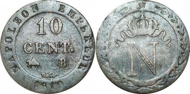 O9816 Rare France 10 Centimes Napoléon I 1810 B Rouen ->Make offer