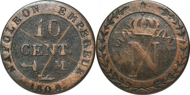 O9833 France Faux d'époque 10 Centimes Napoléon I 1809 M Toulouse ->Make offer