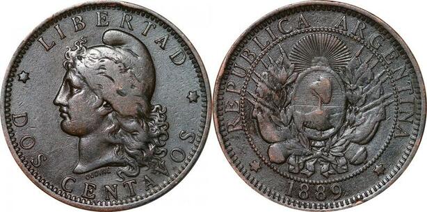 O9861 Argentina 2 Centavos Capped Liberty Head 1889 -> Make offer