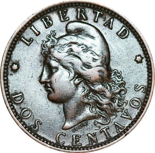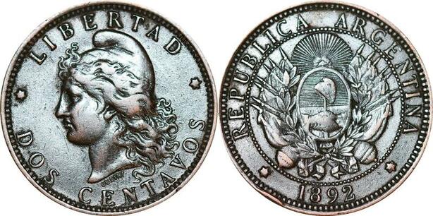 O9867 Argentina 2 Centavos Capped Liberty Head 1892 -> Make offer