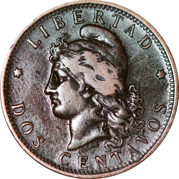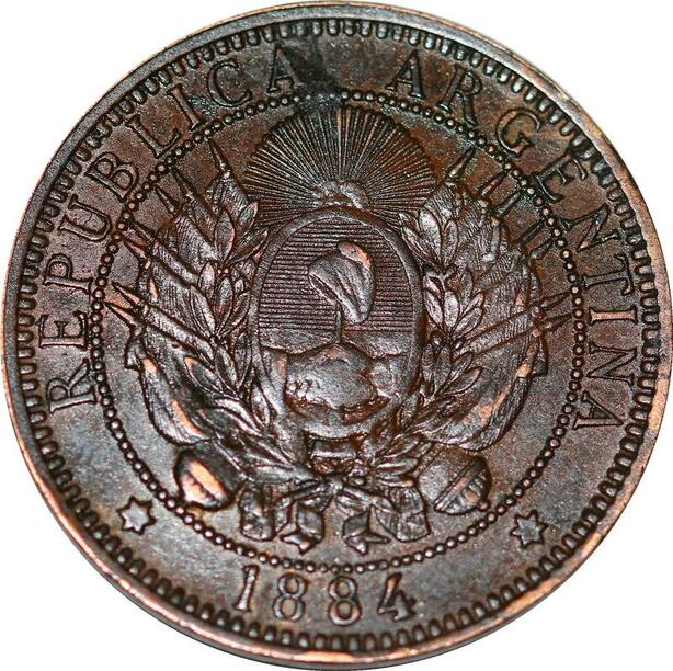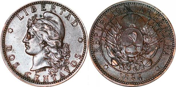 O9869 Argentina 2 Centavos Capped Liberty Head 1884 AU -> Make offer