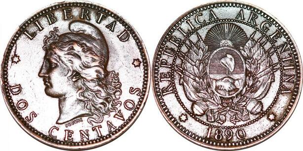 O9875 Argentina 2 Centavos Capped Liberty Head 1890 -> Make offer